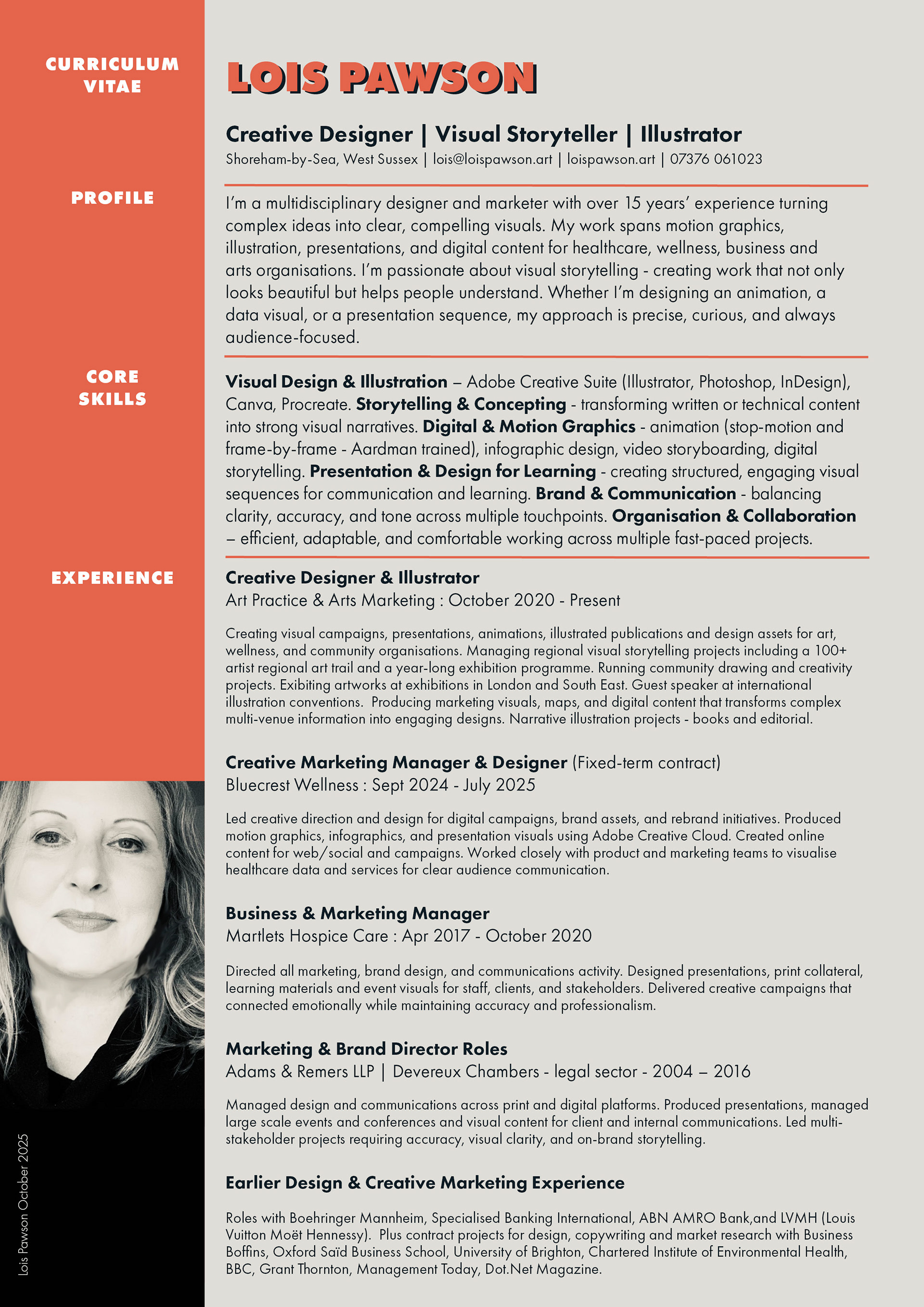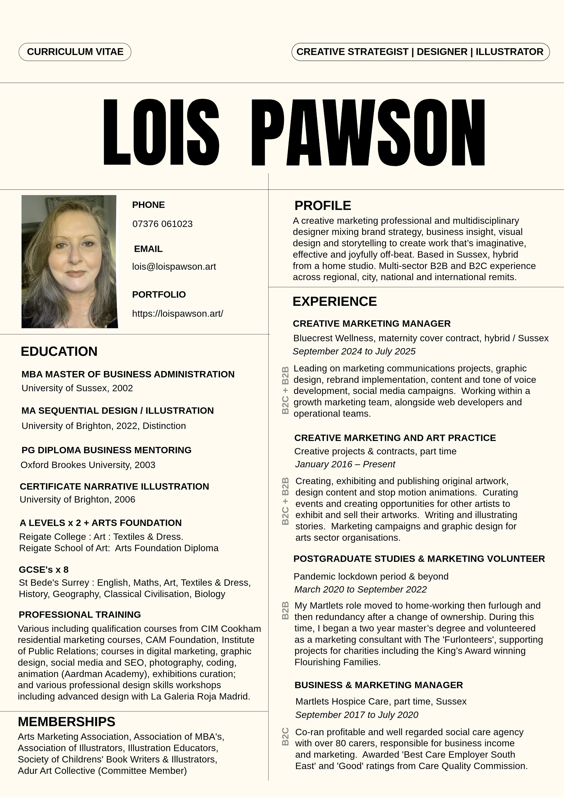 I hold postgraduate qualifications in both marketing and design, and I'm known for delivering thoughtful, high-quality, human-made visuals in a world swamped by generative AI.